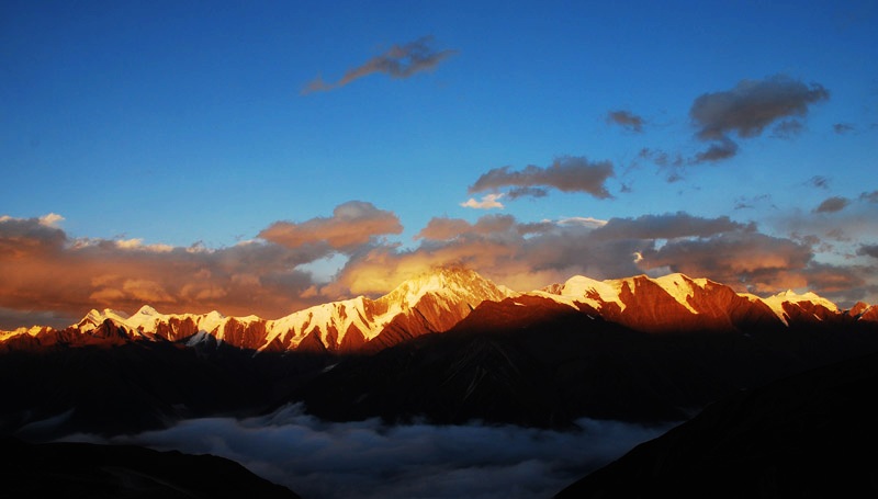 B.看贡嘎日出日落日照金山),尽情的拍摄贡嘎云海
