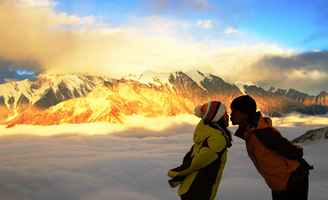 B.看贡嘎日出日落日照金山),尽情的拍摄贡嘎云海