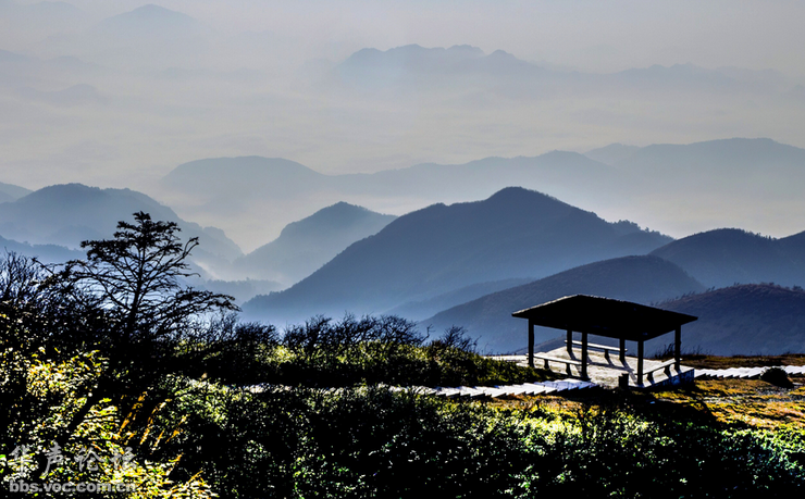 自愿早起,上山庄后的眺望台上观光、这里辽阔无边,为熊山最佳观景点,日出和晚霞非常的壮丽。那种美,将令你人品将超级大爆发。
