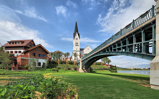 哈施塔特小镇地处惠州博罗县,借鉴奥地利建筑风格,以奥地利哈尔施塔特小镇为建筑蓝本,结合本地特点,倾力打造而成,三面环山,内拥17万平方米原生内湖,将浓郁的奥地利建筑风格和欧陆人文风情完美融入当地得天独厚的山水资源之中,不出国门仿若置身奥地利童话当中。一种风情,两座小镇,来到五矿哈施塔特,深深体味到远来的奥地利欧陆风情与中国传统文化、岭南文化交融碰撞的奇妙美景。